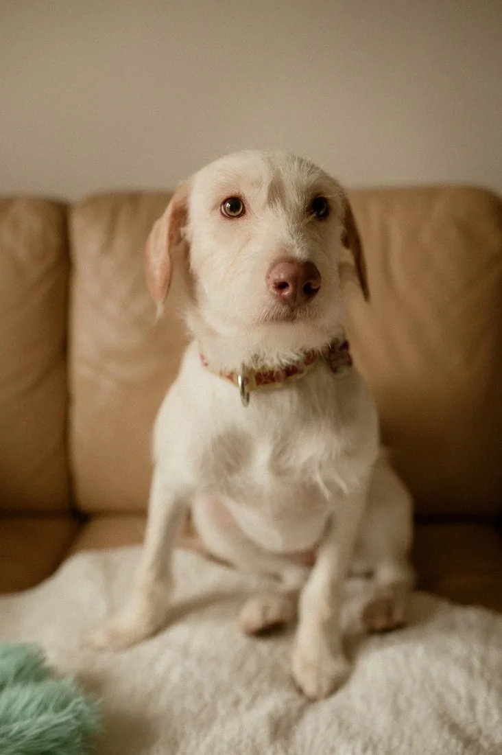 Emma is a soft, sensitive soul with a calm, balanced energy. She is deeply affectionate. Once she feels safe, she leans into her people, gives the sweetest “sneak attack” nose kisses, and will gently place her paws on your shoulders for a hug before covering you in kisses. She loves being cozy, whether that’s curled up on the couch, in bed, or tucked into her crate, happily soaking up affection.